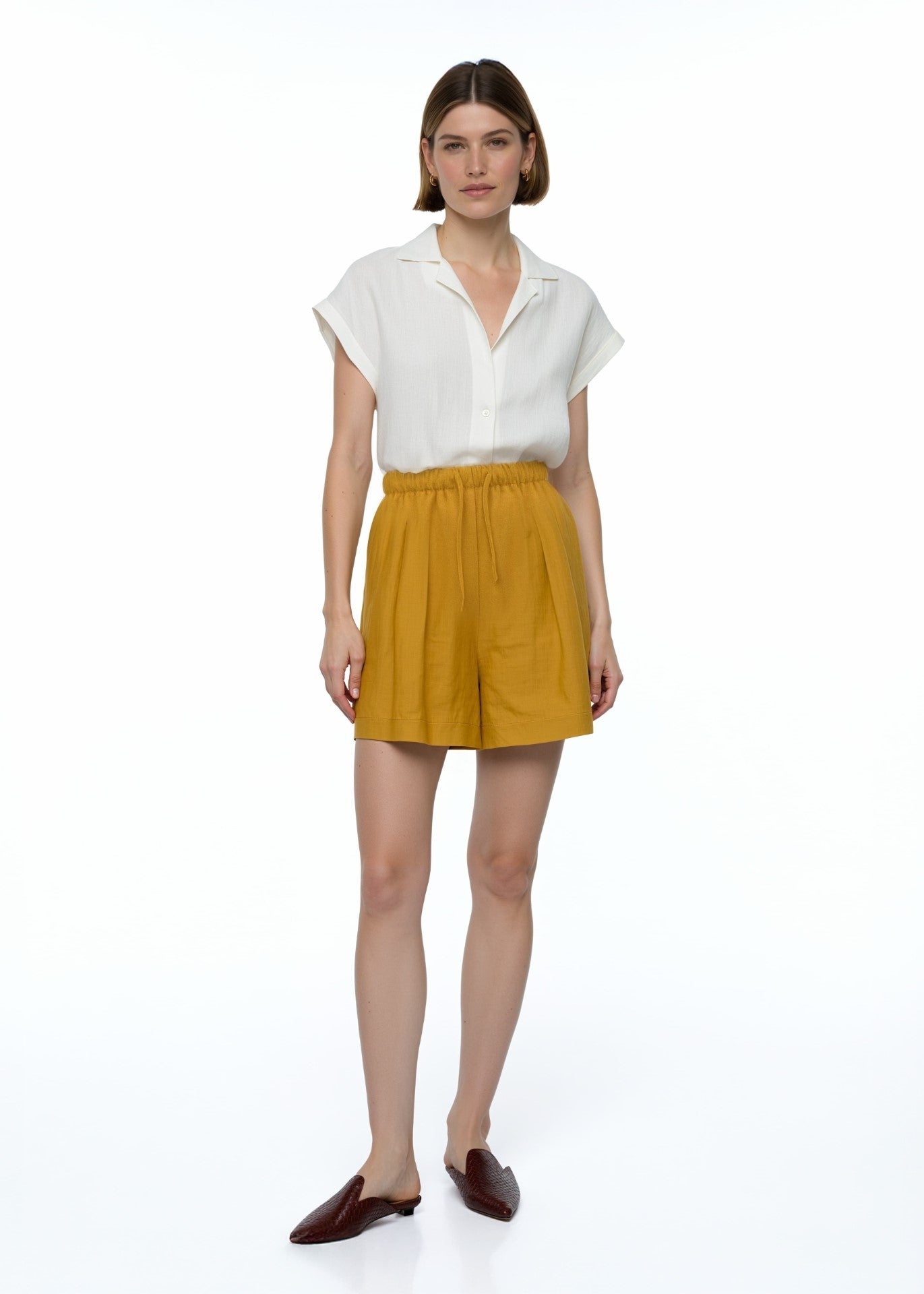 Lightweight, breathable, and extremely comfortable. These relaxed fit shorts made of organic linen feature a clean A-line cut, adjustable waistband via drawstring, and seam pockets. A staple for warm weather dressing.