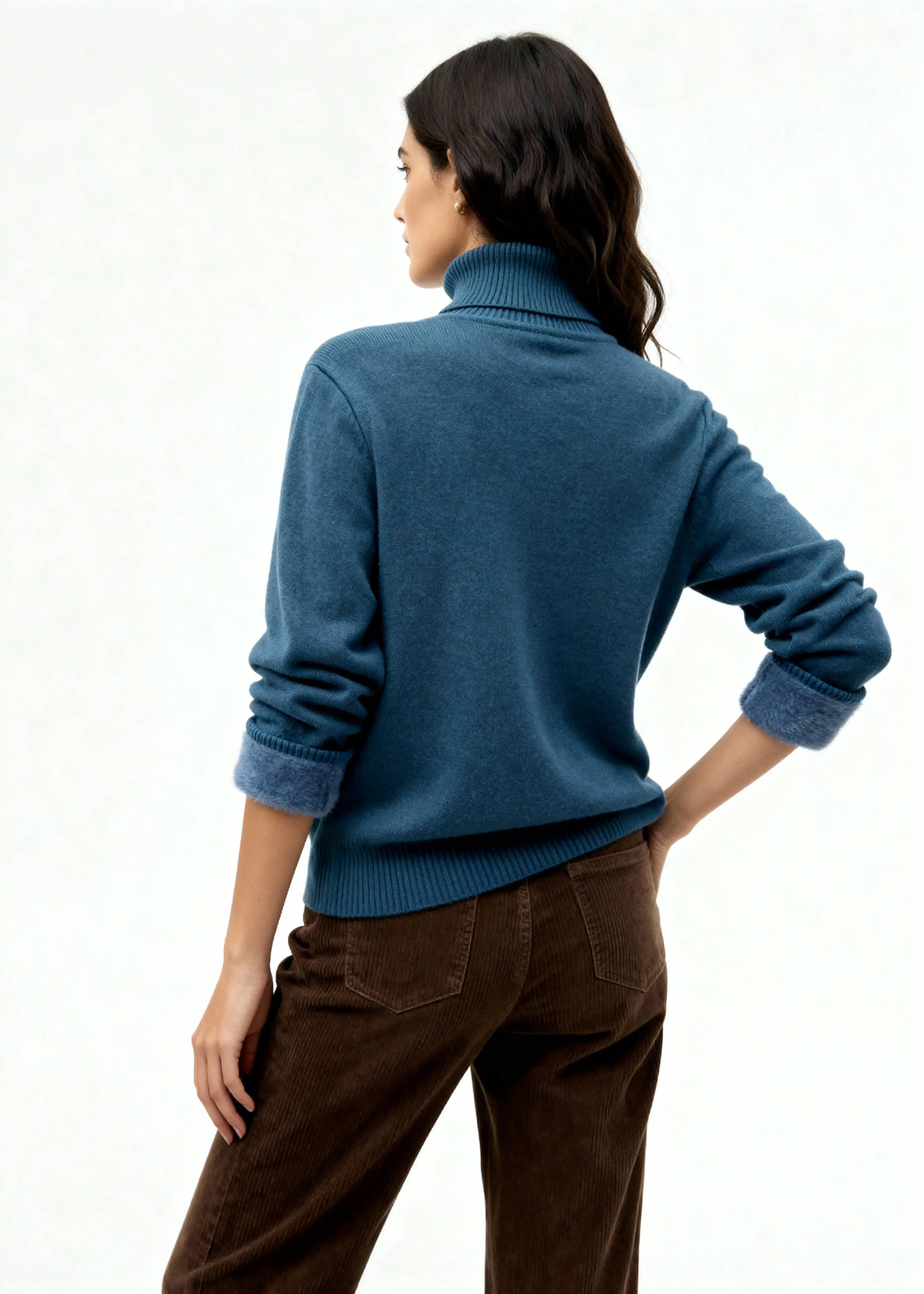 A turtleneck that actually keeps you warm — imagine that. Fully lined with plush fleece, so it's properly cozy without looking bulky. The kind of sweater you put on in the morning and forget you're wearing because it just works. Turtleneck sits nicely, cuffs stay where they should, fit is easy. Works for everything from coffee runs to actual plans. You'll want multiples.