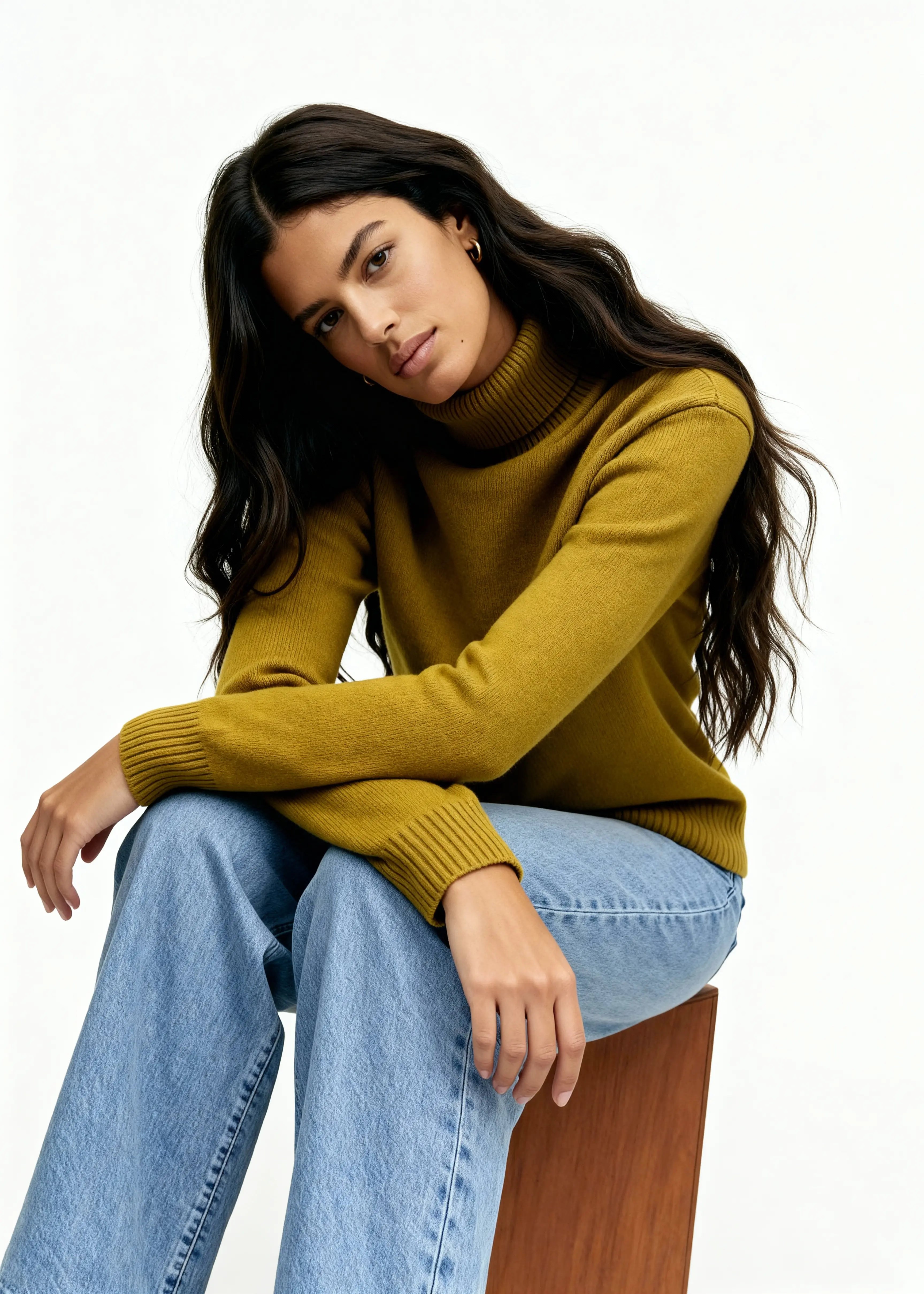 - Classic turtleneck with ribbed finish
