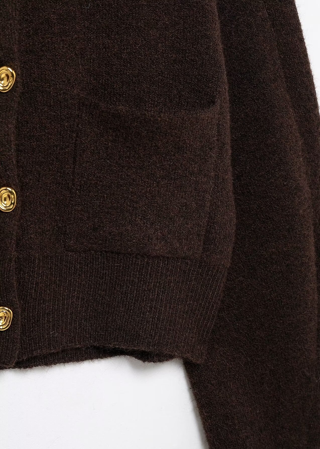 This cardigan sits somewhere between light outerwear and knitwear proper. The brushed texture traps warmth without bulk, making it ideal for the months that bridge seasons, when a coat feels too much but a shirt too little. The cropped cut works easily over high-waisted trousers or skirts, and the rounded neckline sits neatly over a roll neck or cotton tee.