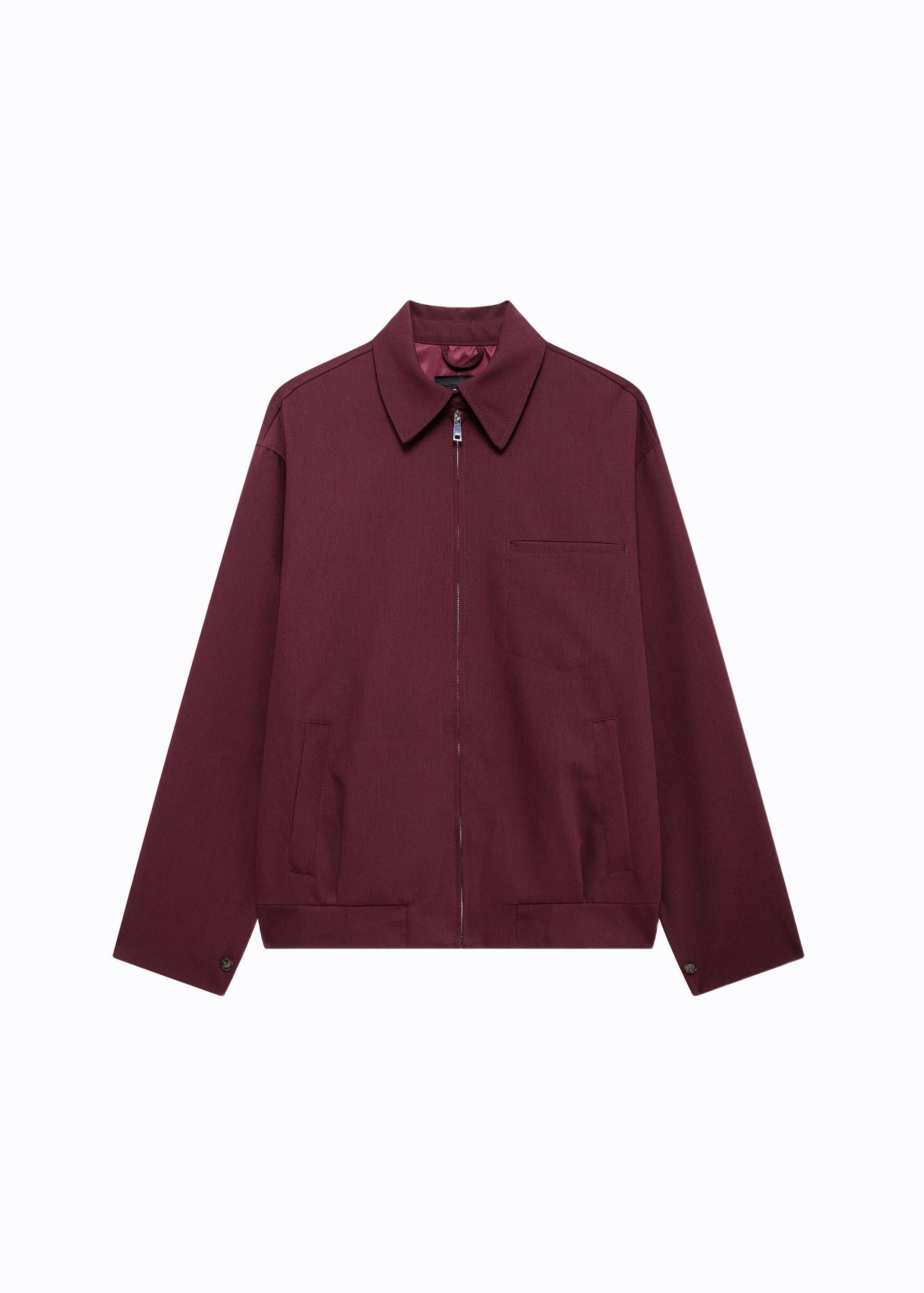 This jacket is an immediate elevation, a surprisingly soft piece of armor rendered in the confident, saturated colour of deep Aegean wine. It’s a clean-lined work jacket—short of body, abundant of style—that opts out of any actual labor.