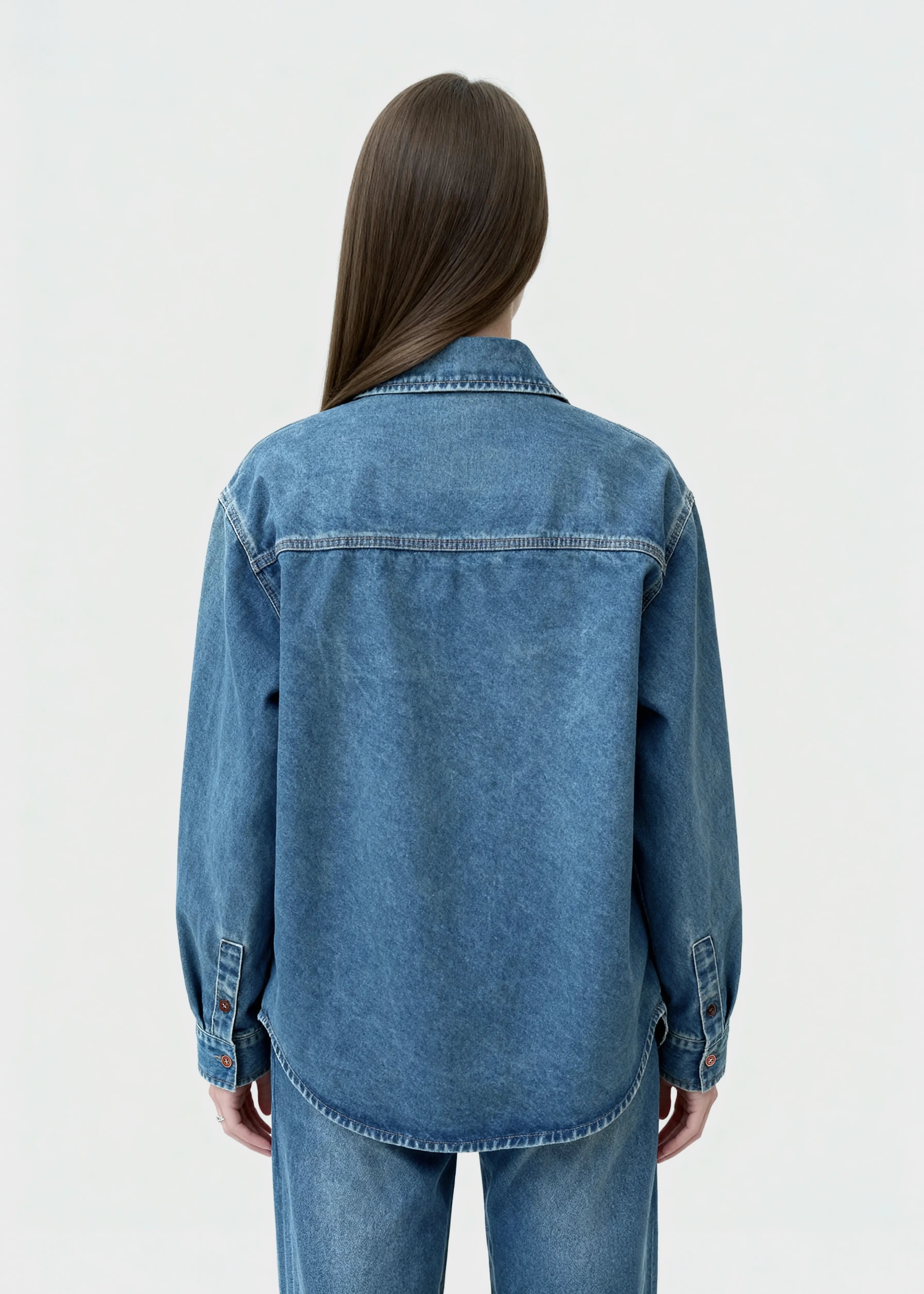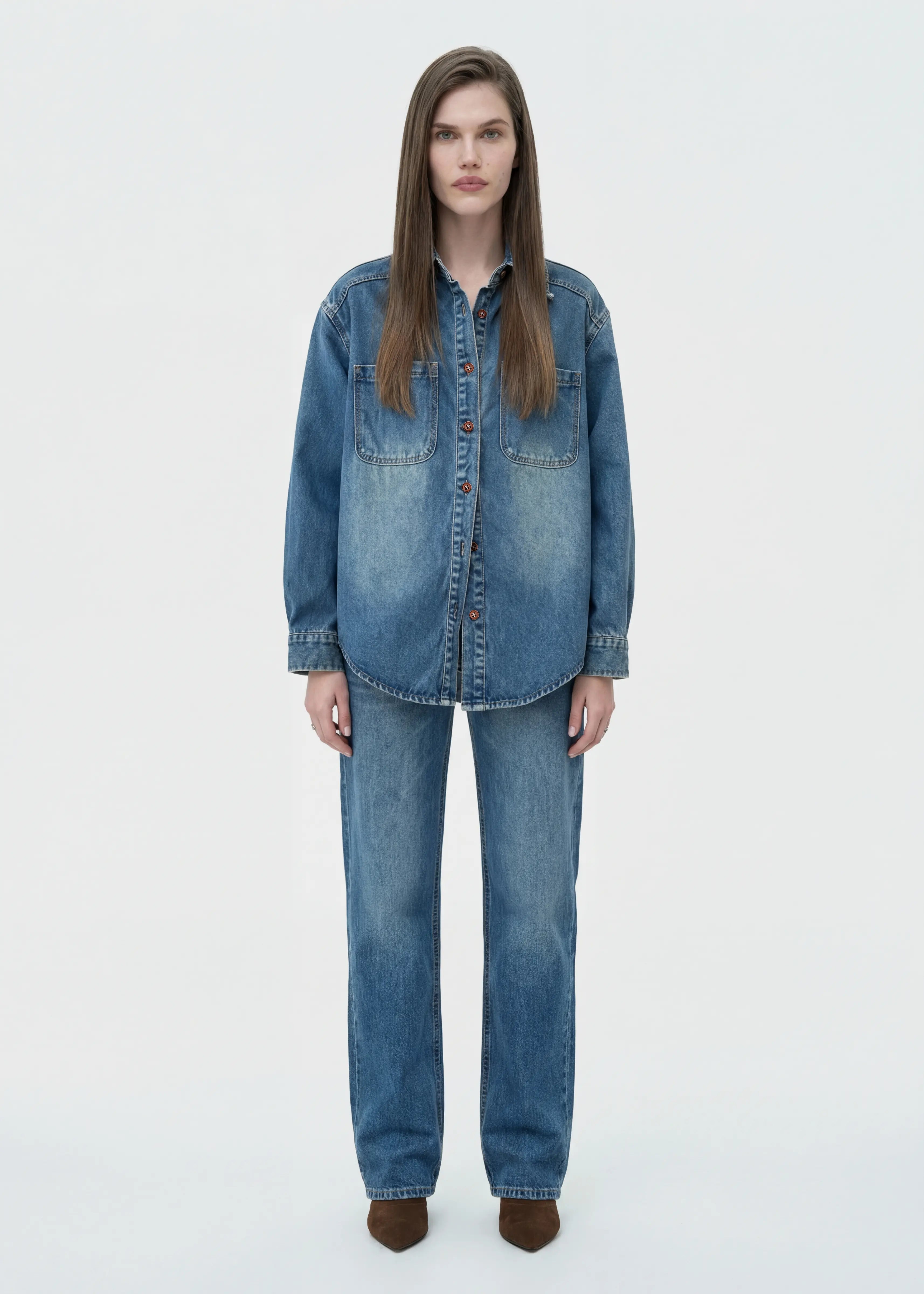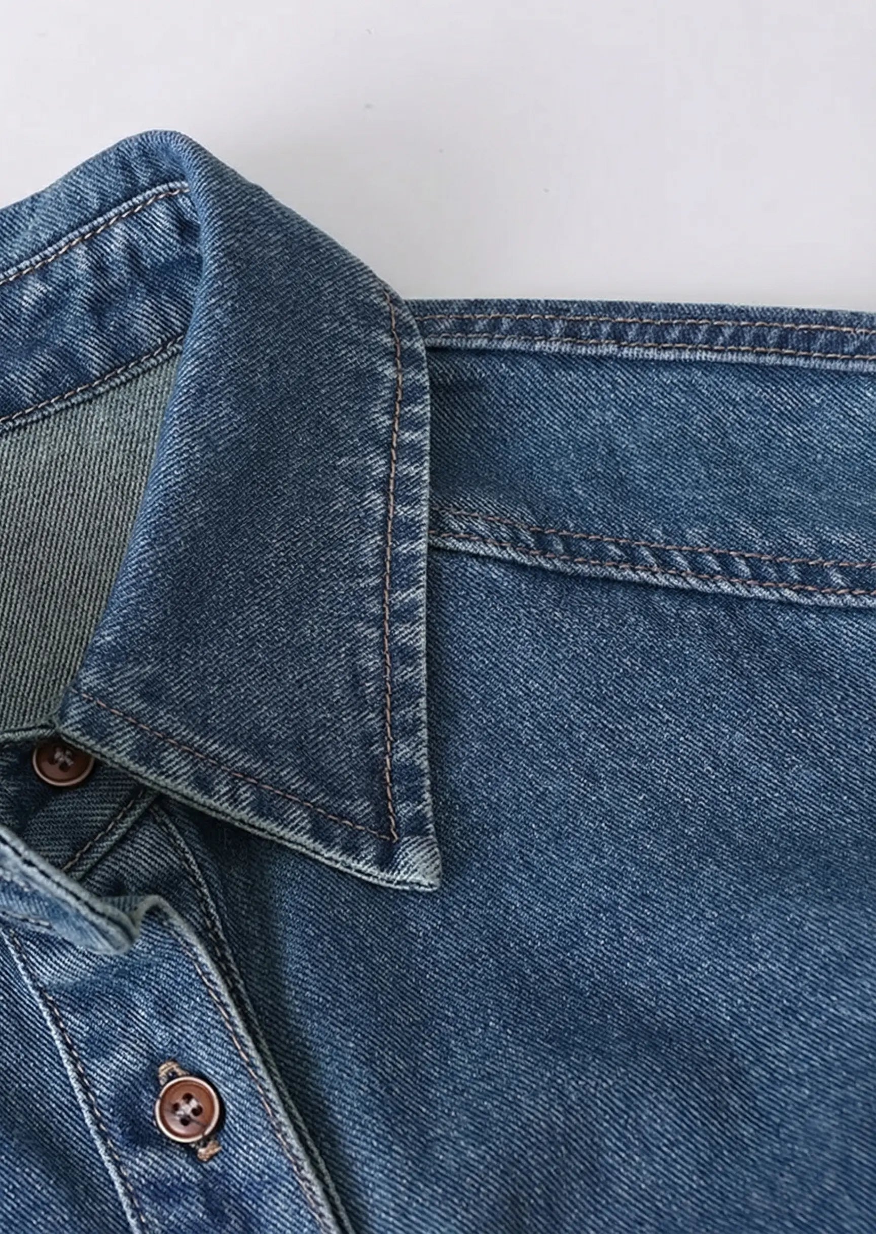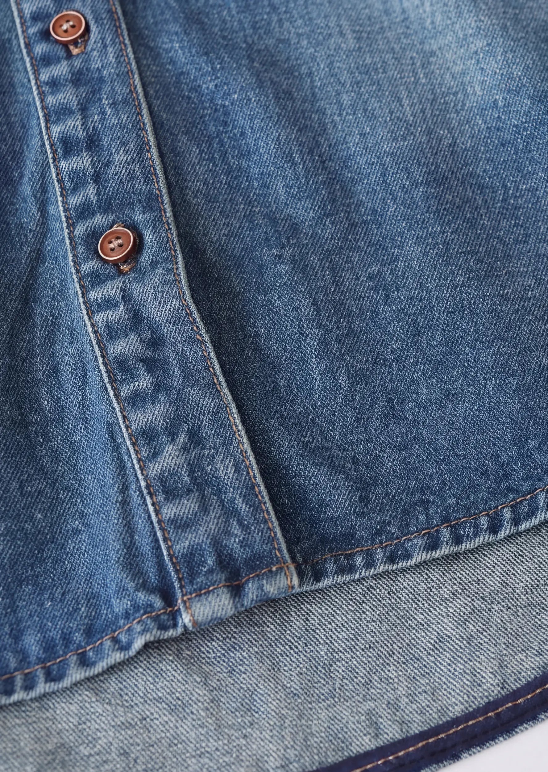 A wardrobe anchor that feels like an old favorite from the start. Crafted from soft, mid-wash cotton, this denim shirt features a relaxed drop-shoulder silhouette that strikes the right balance between structure and drape. Finished with classic contrast stitching and rich tortoiseshell buttons. Tuck it into a mini skirt or wear it open over a slip dress for easy layering.