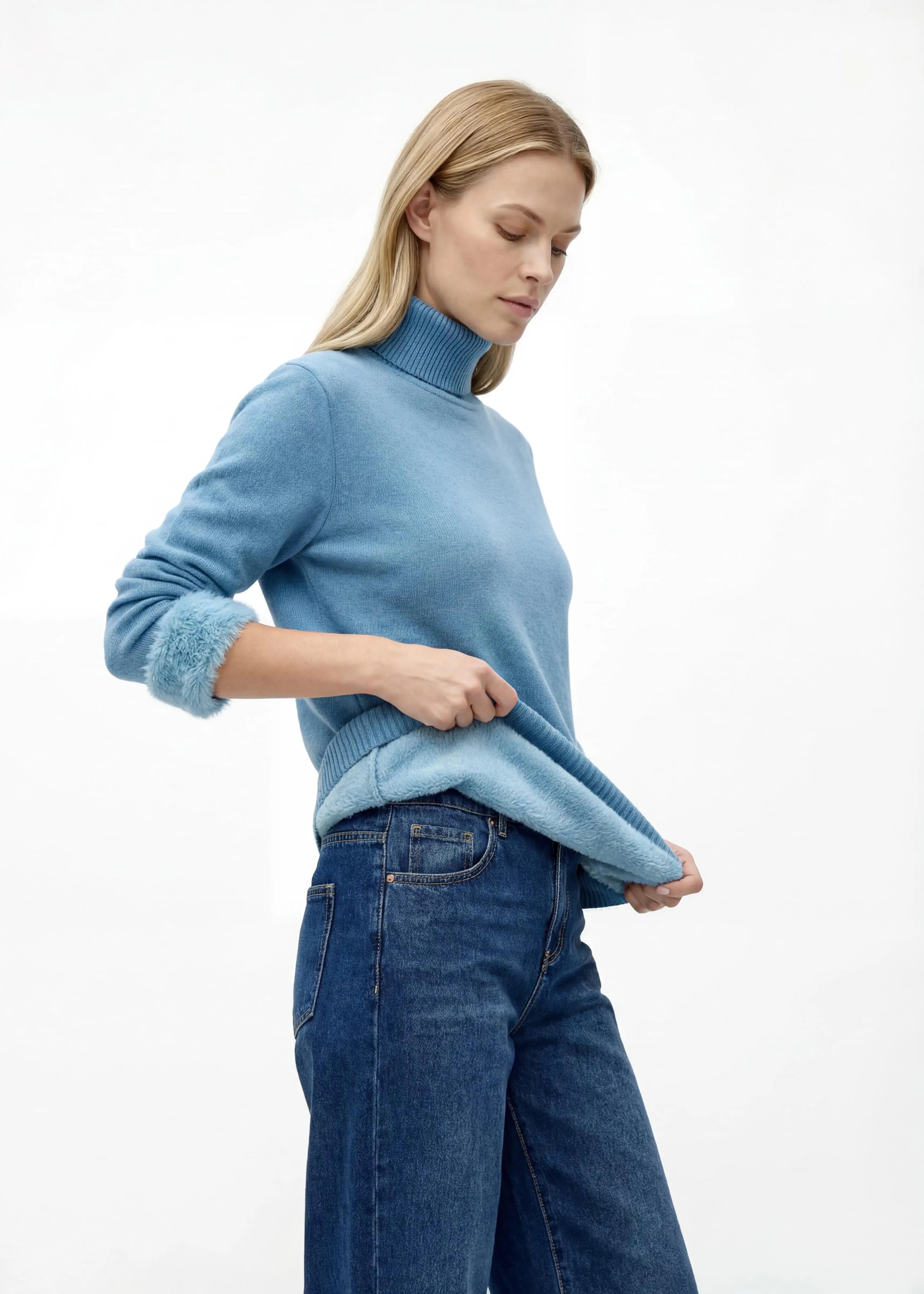 A turtleneck that actually keeps you warm — imagine that. Fully lined with plush fleece, so it's properly cozy without looking bulky. The kind of sweater you put on in the morning and forget you're wearing because it just works. Turtleneck sits nicely, cuffs stay where they should, fit is easy. Works for everything from coffee runs to actual plans. You'll want multiples.