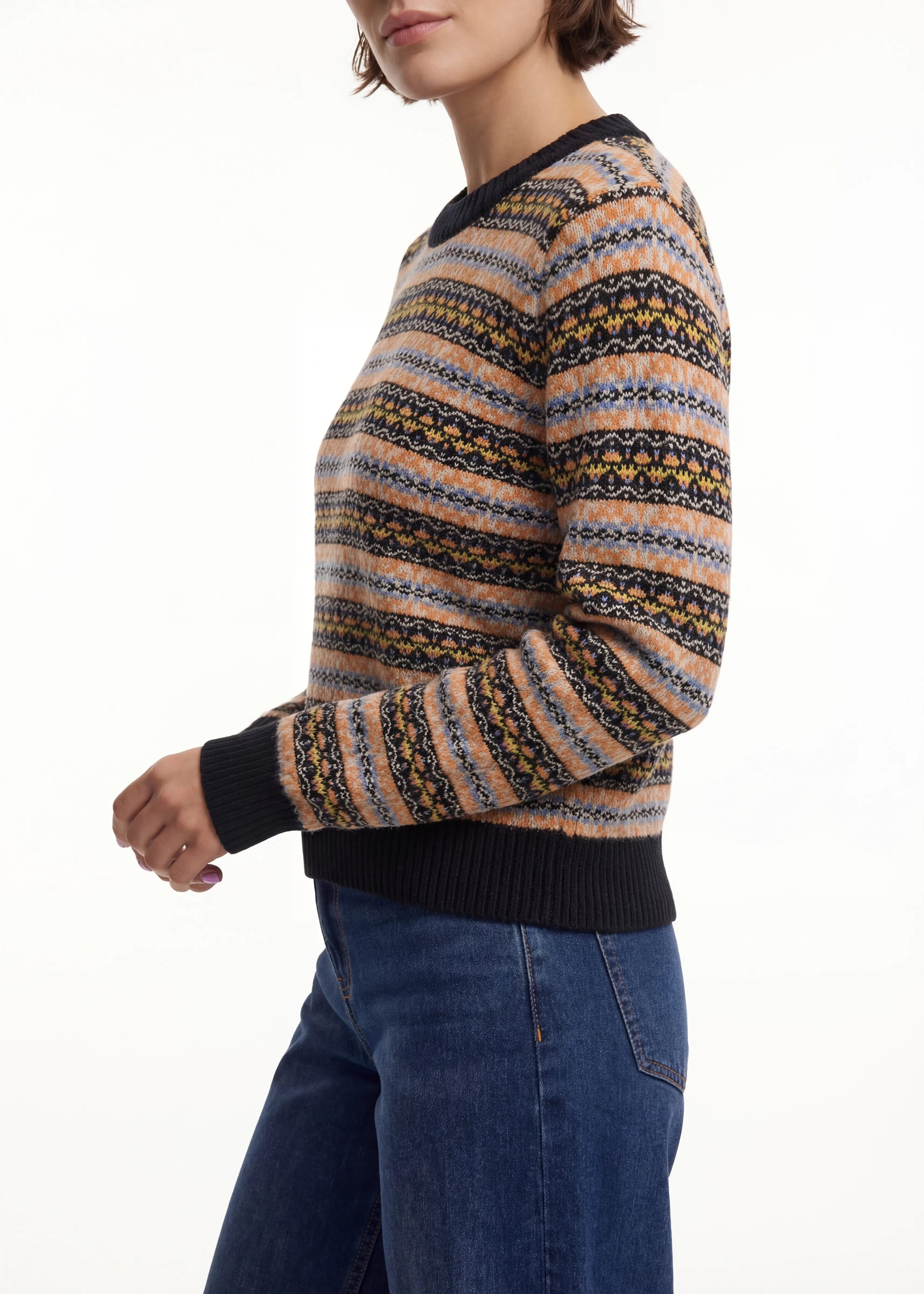 While a strict traditionalist might argue that true Fair Isle must be knitted by a woman named Agnes on a tiny, wind-battered island in the Shetlands, in the broader lexicon of style, this hits every mark. It features the signature stranded colorwork—bands of geometric motifs stacked like layers of very comfortable sediment.