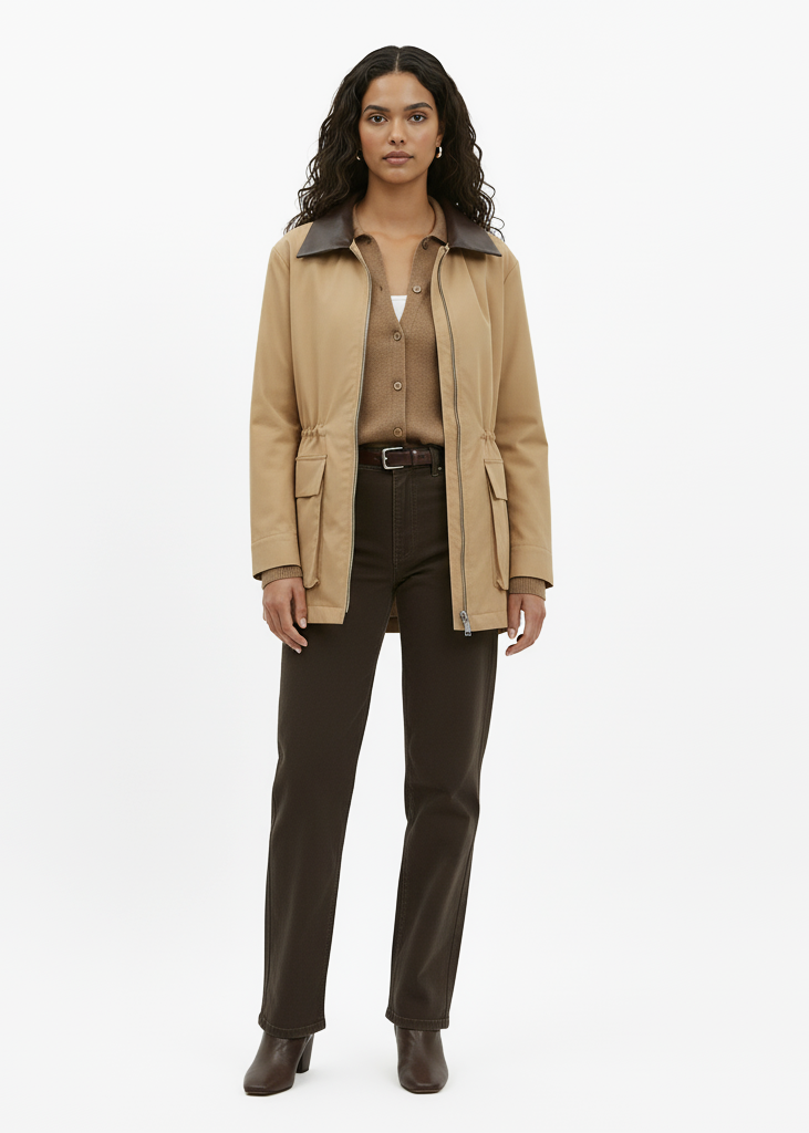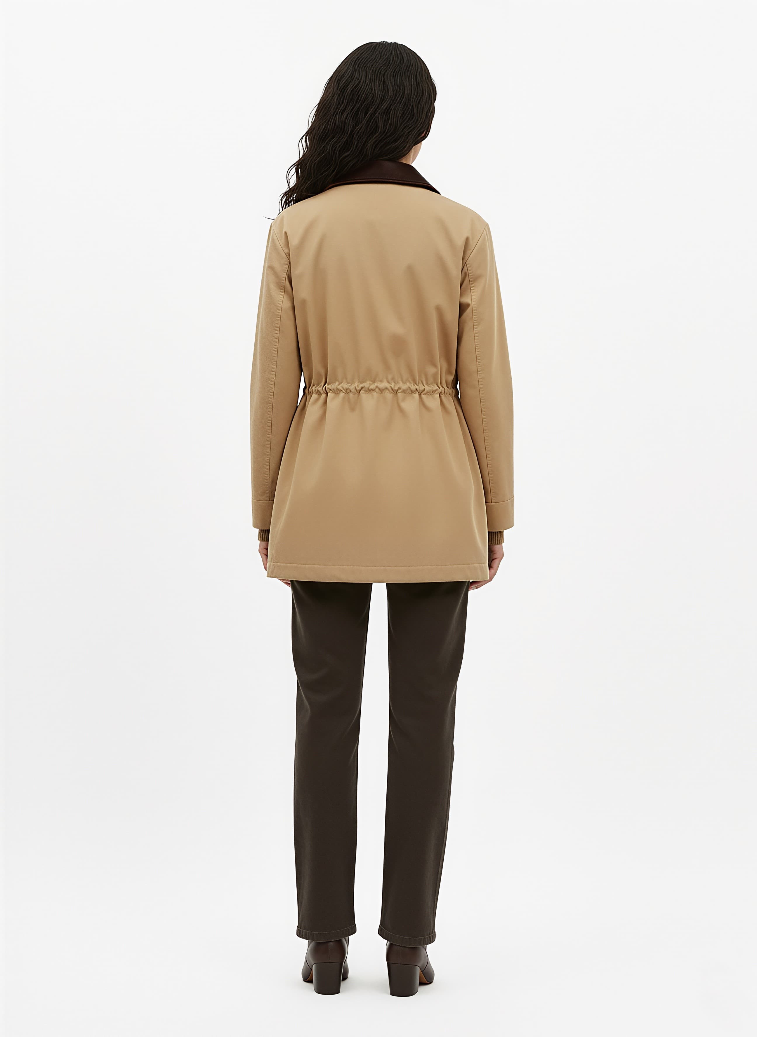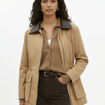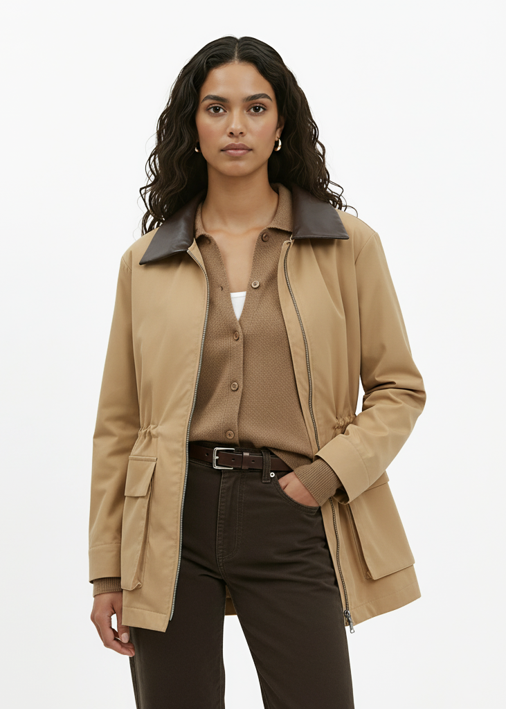 The Cyrene takes its cues from classic field jackets, resulting in a design that is both practical and modern. A blend of cotton and T400® polyester gives the jacket the crisp handle of traditional canvas but with a subtle stretch and fantastic crease-resistance. It’s durable without being rigid. The silhouette is versatile—leave the interior drawstring loose for a straight-cut look, or cinch it to create a defined waist. The sharp, contrasting collar and two generous patch pockets complete the design. It is a piece you'll reach for year after year.
