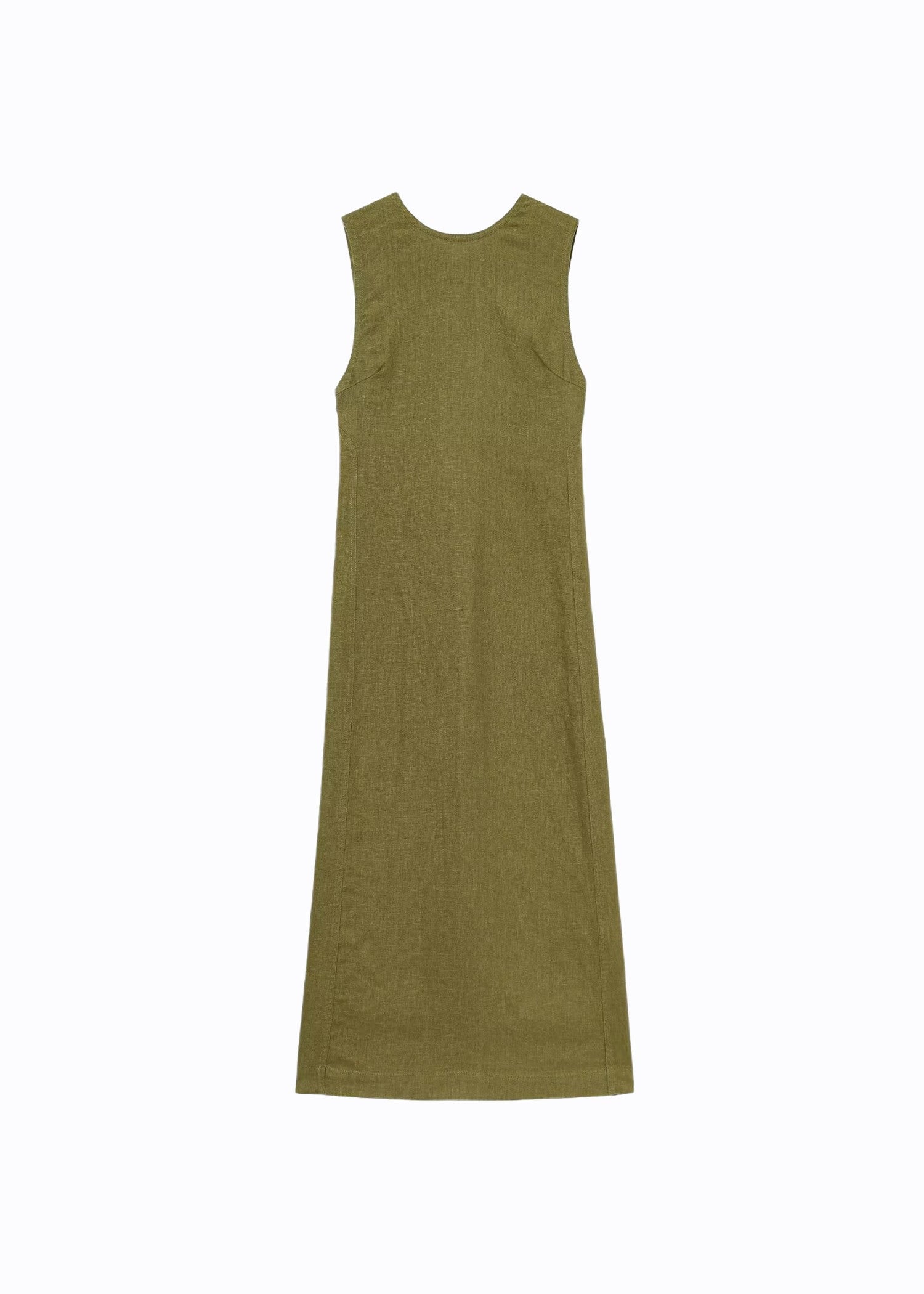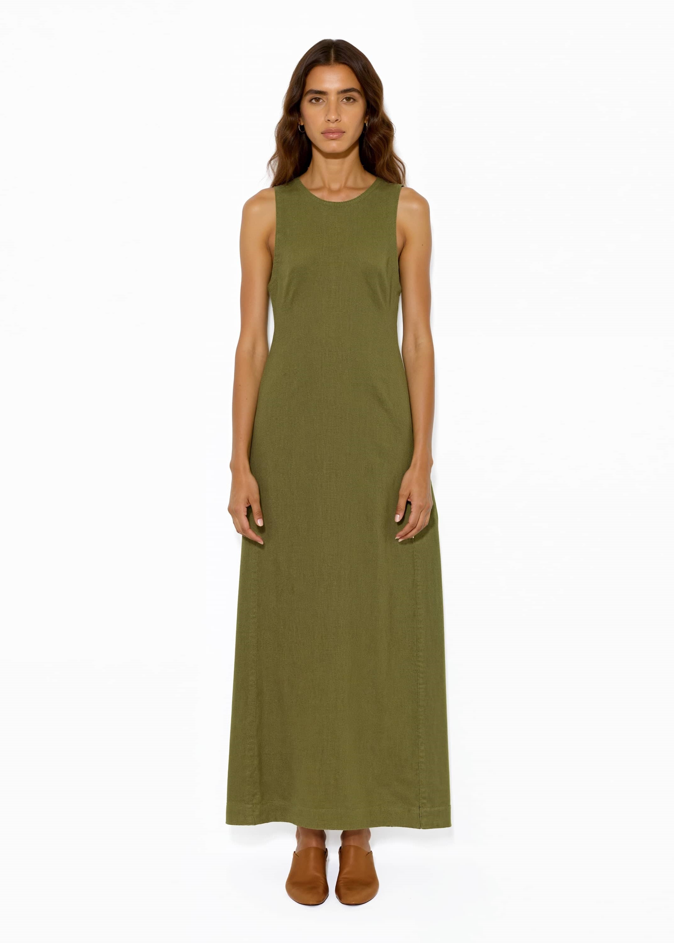 There’s something satisfying about a dress that doesn’t try too hard. The Anya is exactly that. Clean, well-cut, and grounded in material. It’s made from a linen that holds its shape but still moves with you. Weighty enough to feel substantial, light enough to wear all day.